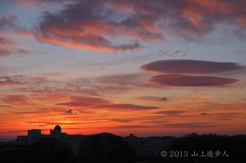 今年一番の冷え込みと強風の朝、東の空にUFO出現。