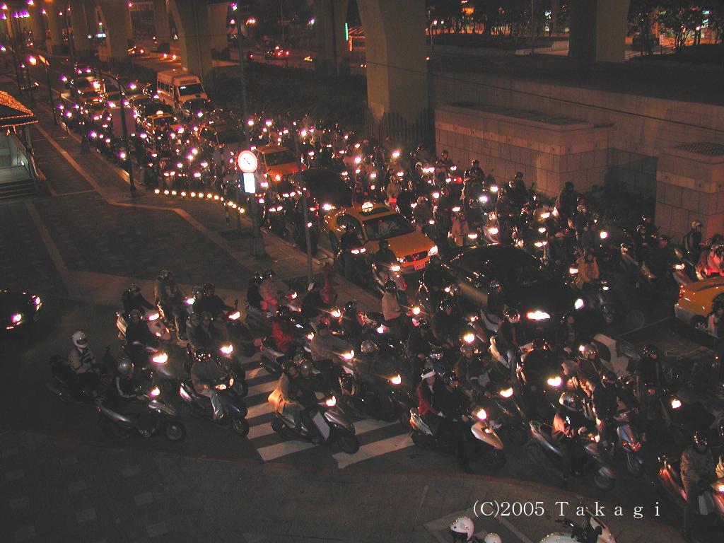 出勤及び退勤時間帯になると、道路は夥しい数のバイクとその騒音に覆われる。