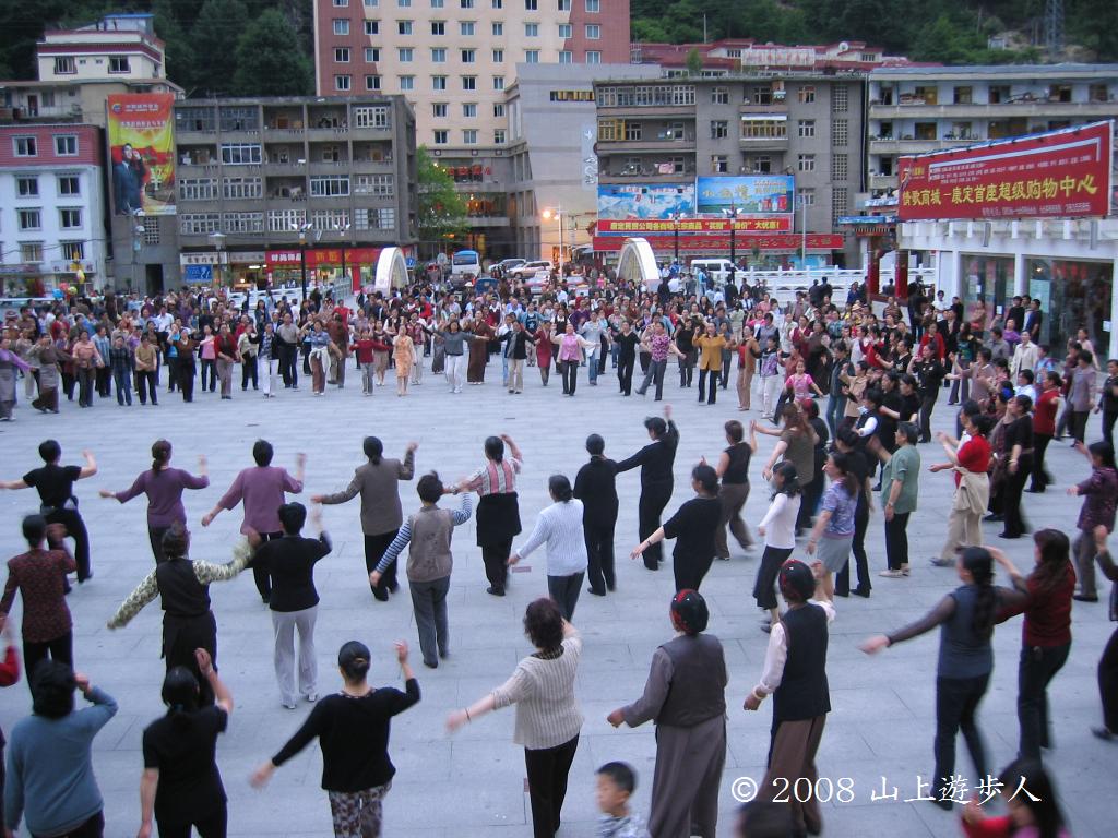康定の夏は午後8時を過ぎても明るい。町の中心にある広場では大勢の人が集まりダンスで夏の夜を楽しんでいた。