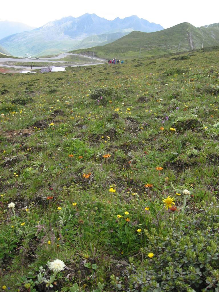 標高4296mの四川省・チェトーシャン峠一帯の草原は高山植物に彩られている。