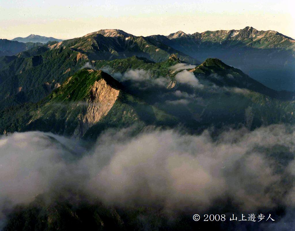 船窪岳方面。中央は野口五郎岳、右は水晶岳