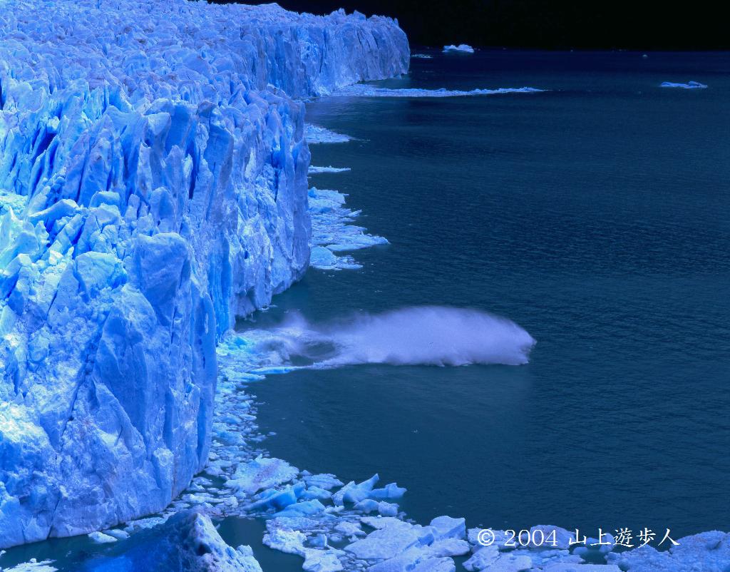 モレノ氷河は激しく移動するので氷河の先端が次々に崩れていく。