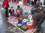 この時期はキノコが沢山取れるので町のあちこちでキノコ売りの露天が並ぶ。