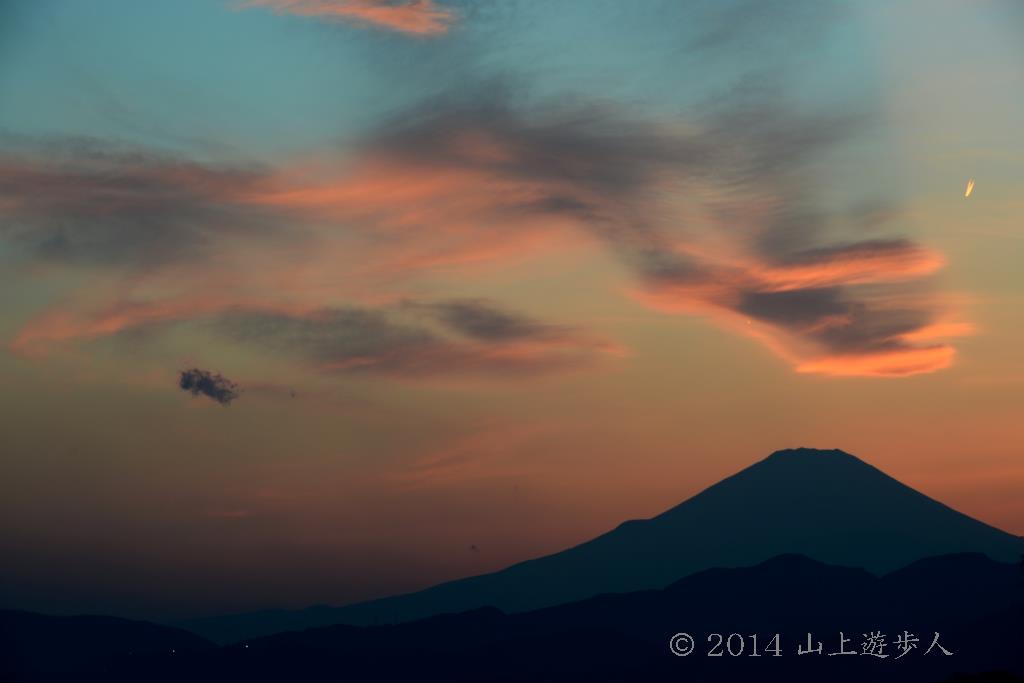 ダイヤモンド富士がが終わると空はオレンジ色に染まった。