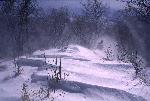 尾根道に出ると猛烈な風で登山道は雪煙が舞い上がる。 [1994/02/13]