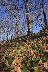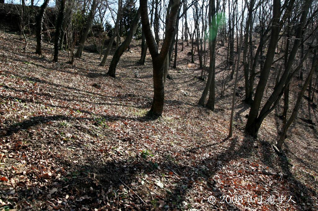 すっかり葉を落とした木々が冬の日を受けて枯葉に影を映している。 [2008/01/17]