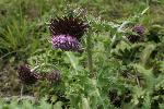 | ひときわ大きな花をつけるこの花はフジアザミ。富士山とその周辺の山で見られる。 [2005/09/03] |  |  |