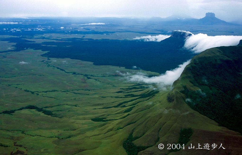 ギアナ高地の広大なサバンナにテプイと呼ばれるテーブルマウンテンが点在する