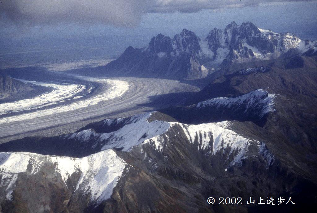 マッキンリーを源とする大氷河が山間部を縫うように続く