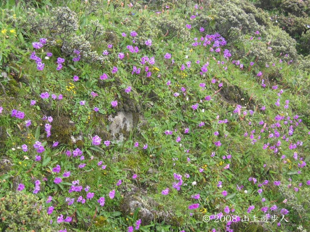 なかなかサクラソウが現れなかったがやや乾燥したところにきたら一面サクラソウになった。
