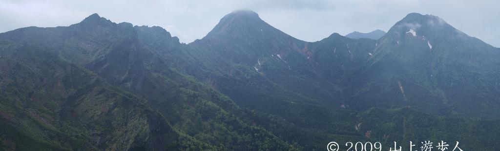 今年の八ヶ岳は7月にはいてもまだ残雪がある。左から横岳、中央が赤岳、右が阿弥陀岳。