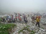 次から次と押し寄せる団体ツアーに登山道ははるかかなたまで続く大行列。