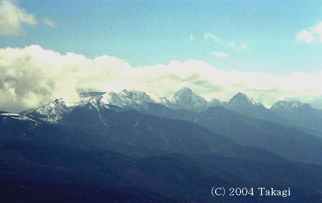 新雪の八ヶ岳連峰 [1998/10/25 : 蓼科山にて]