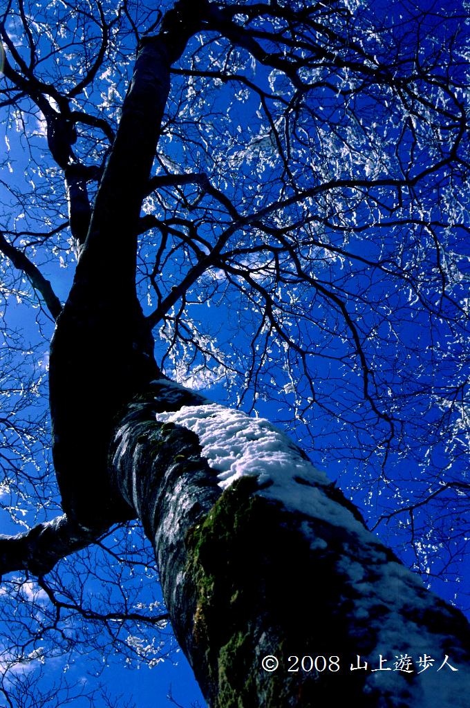 桜が咲き始めたころに寒波襲来。湿った雪が山頂のブナを氷付けにしてしまった。