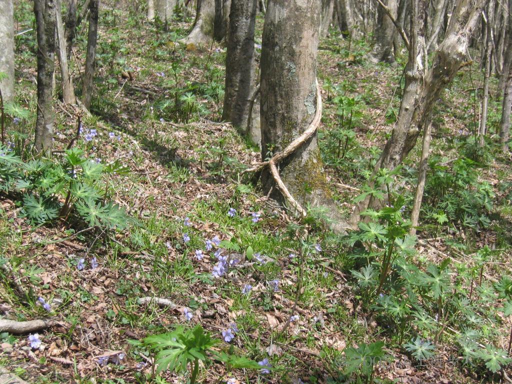 今年は春の訪れが遅かったがやっと湯船山にもスミレが咲き芽吹きの時期が来た。