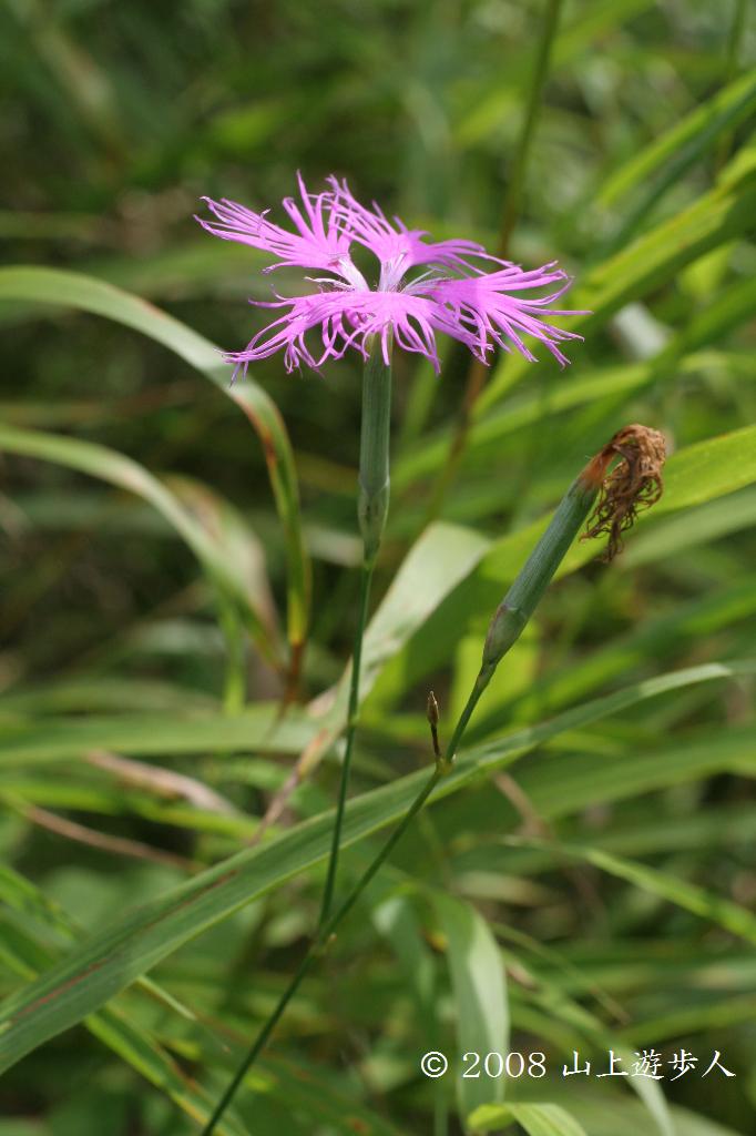 ムラサキや白い花が多い秋の野山ではピンク色のカワラナデシコはまさに紅一点。 [2005/09/03]